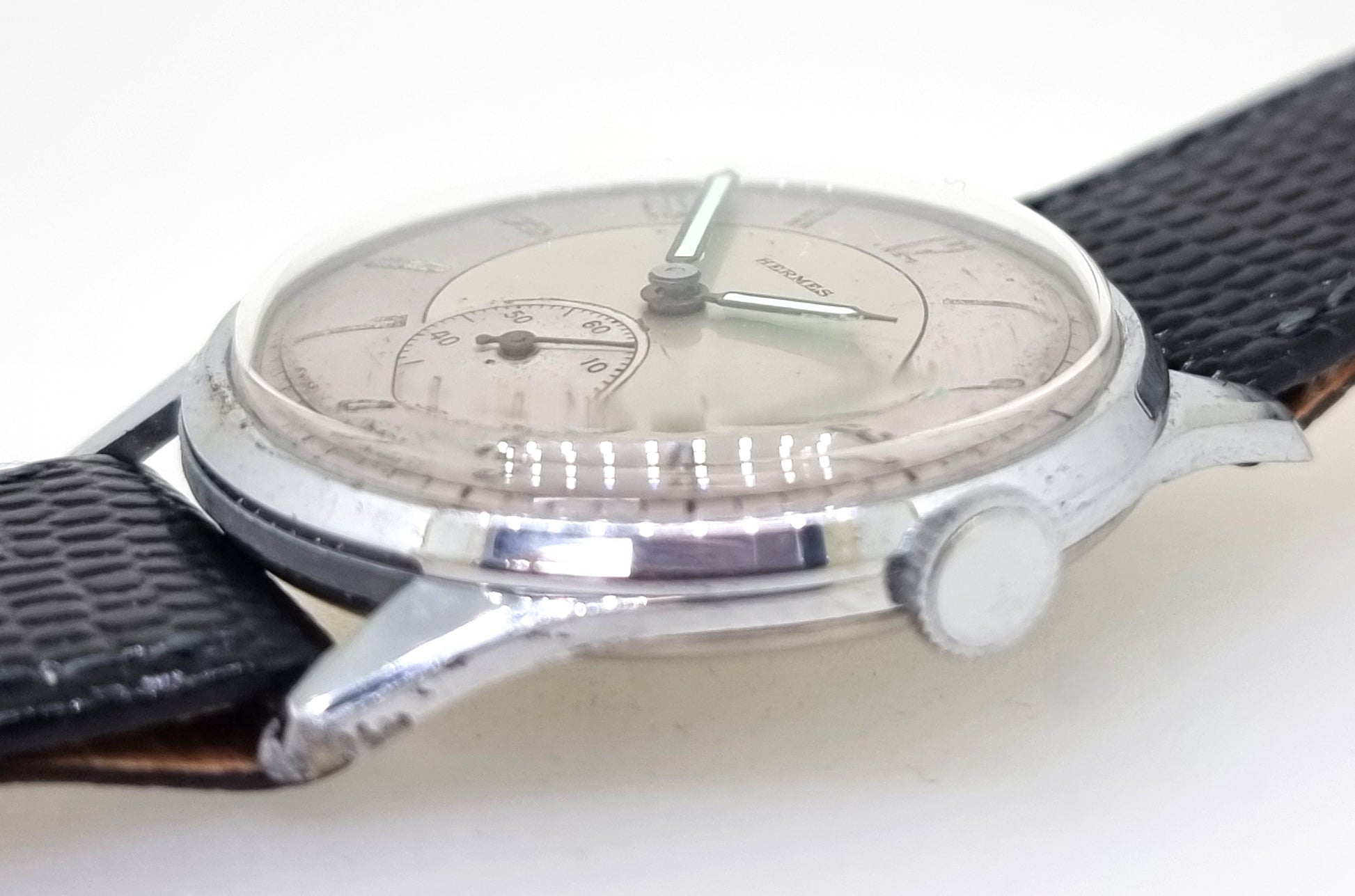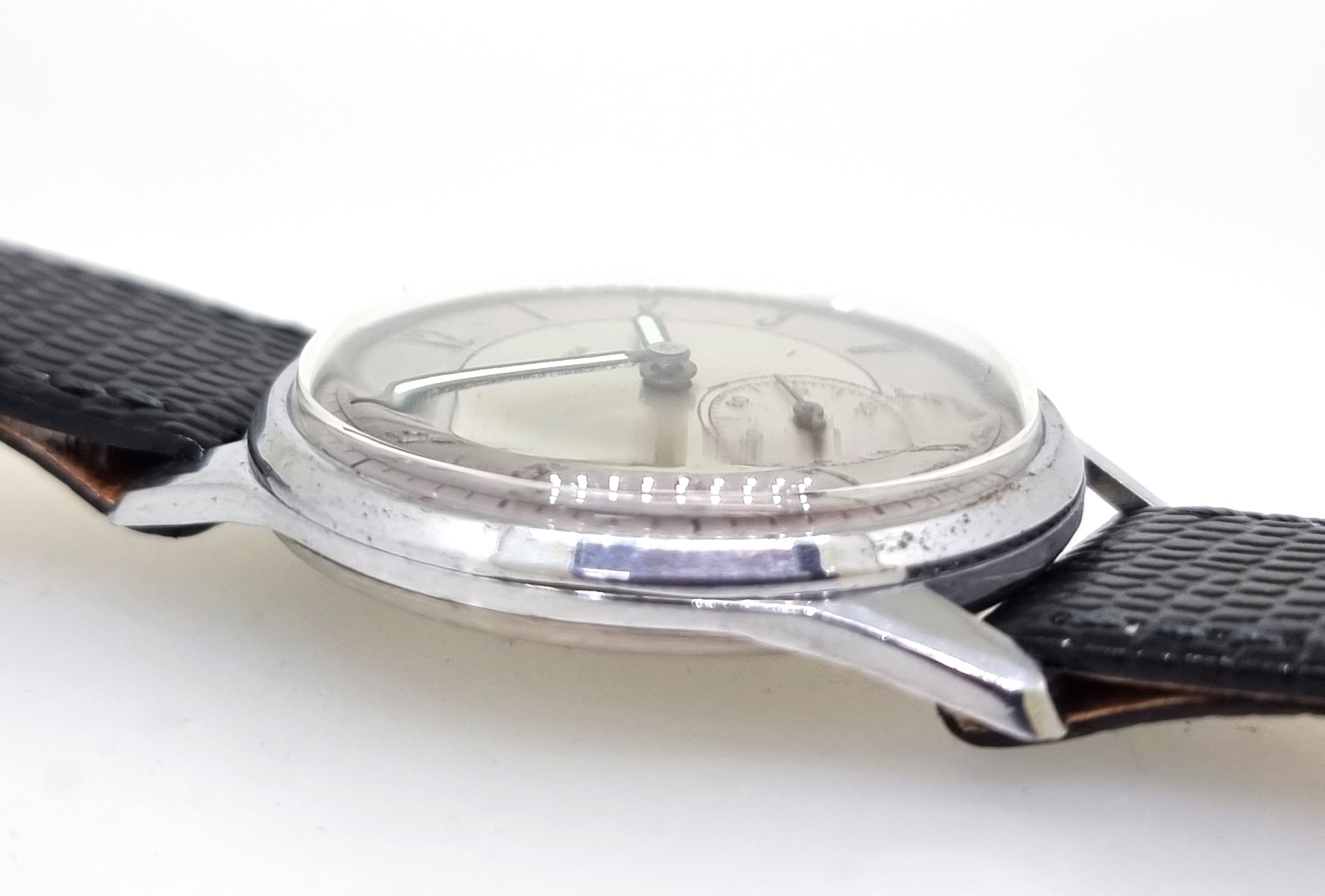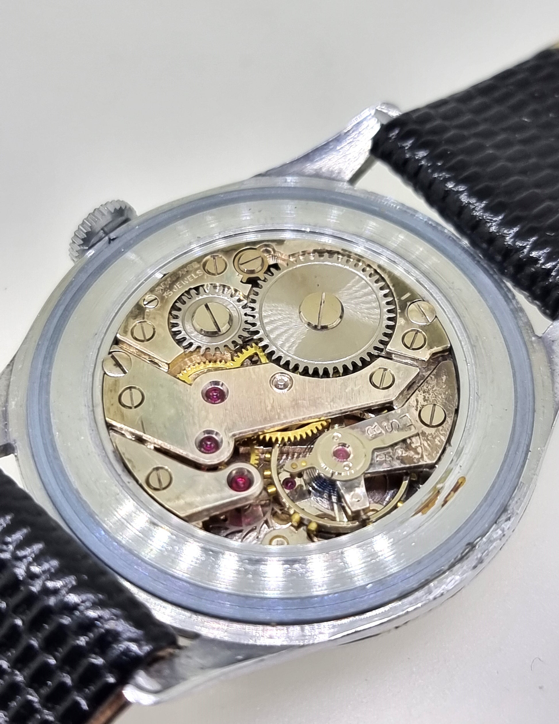 The mechanical manual wind contains 15 jewels. The watch has been fitted with new hour and minute hands, a new crystal, a new crown, and a new case back gasket.