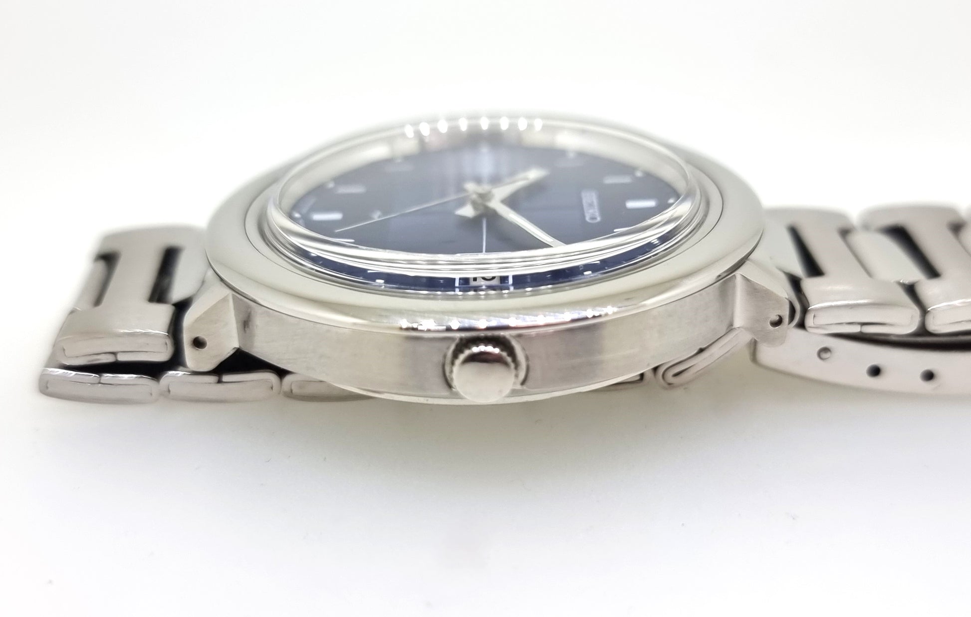 It has been fully serviced by our inhouse Seiko-trained watchmaker and is in full running condition. The curved bracelet end-piece at 12 o'clock is not original. A replacement has been fitted but it is slightly narrower than the original.Â